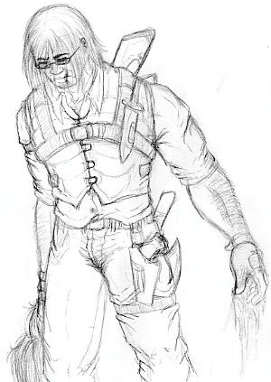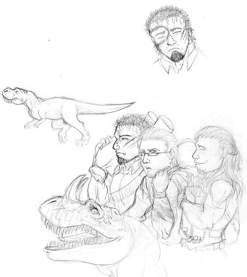 First doodle of my main charas for a fantasy-type/Jurassic Park like RPG