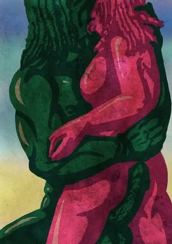 Oh yes....and here's something naughty! I warned you...don't look if you can't take some real...love....*coughs* Yes, it's Midg and Arcas and yes, she is supposed to be that small compared to him (she looks merely like a child standing next to him)